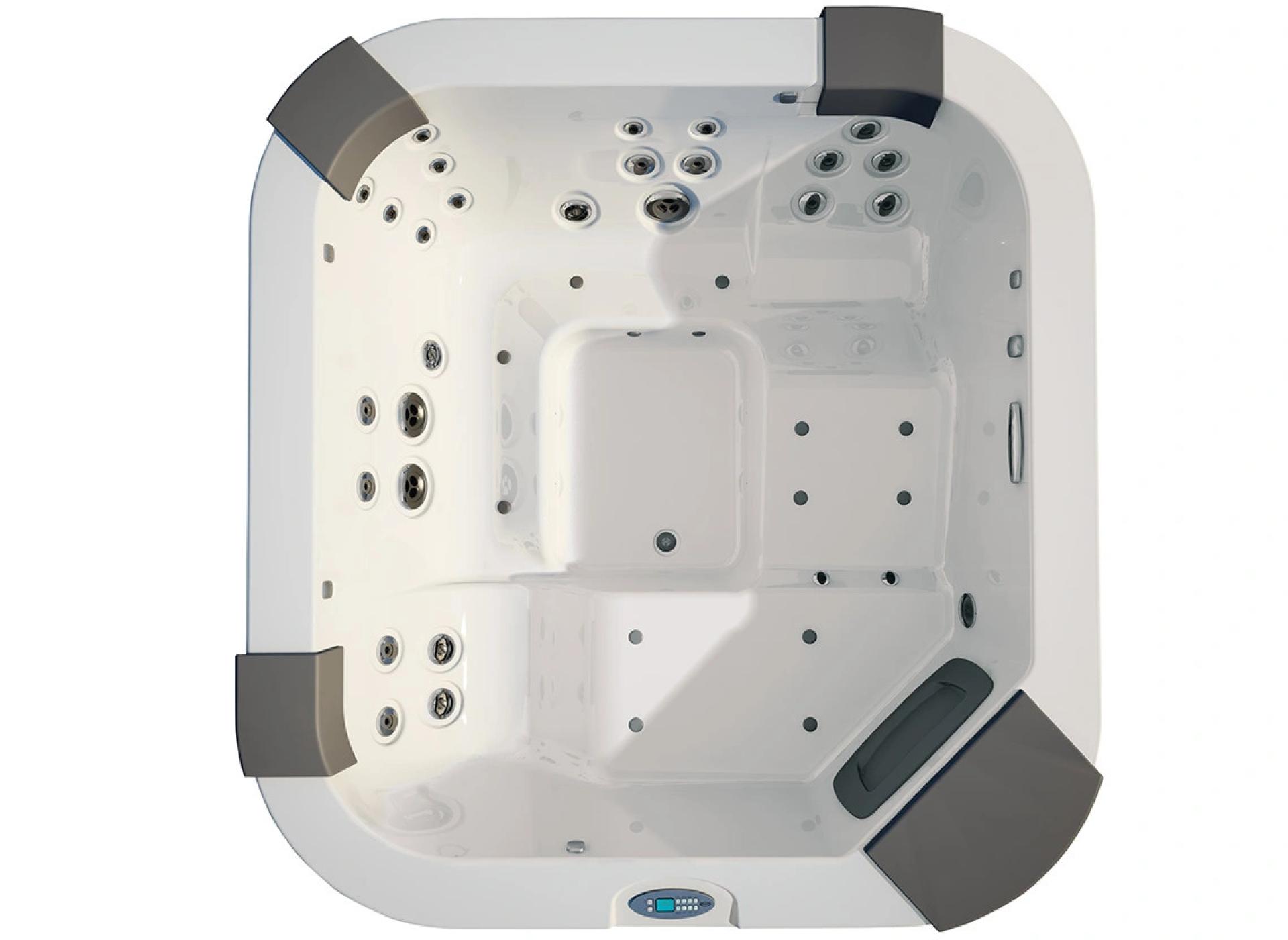 Avec ses dimensions généreuses de 230 x 215 x 90 cm, le spa Santorini accueille jusqu’à 5 personnes, dont 2 en position allongée.