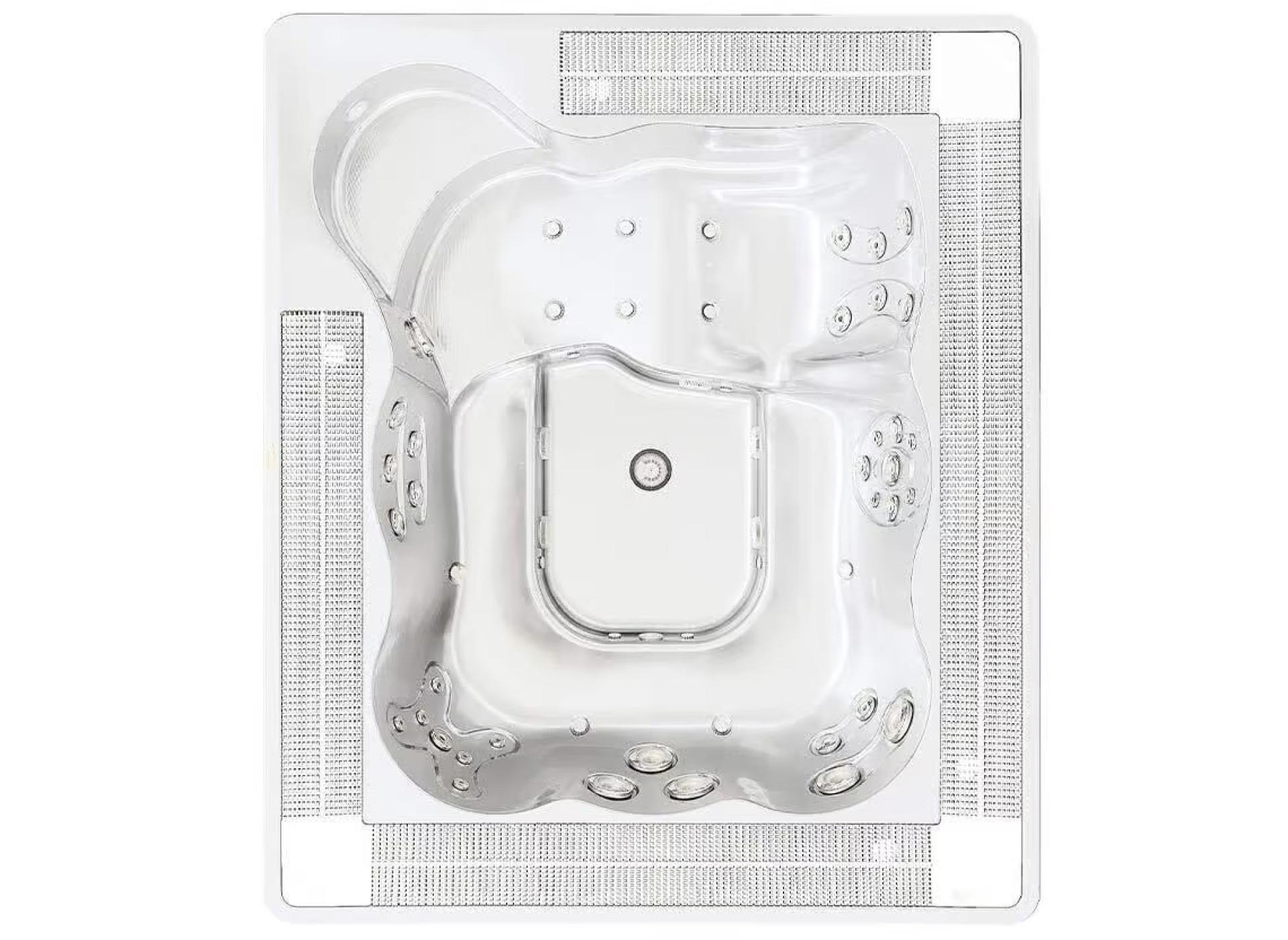 Caractéristiques Poids à sec : 342 kg Poids total rempli : 2044kg Structure : Bois Fond : ABS Type d’isolation coque : Polyuréthane expansé Smartseal™ en option Filtres : 2 cartouches Traitement UV: CLEARRAY® Traitement ozone ClearProtect®: En option Variateur d’eau : 2 Variateur d’air : 3 Clavi...